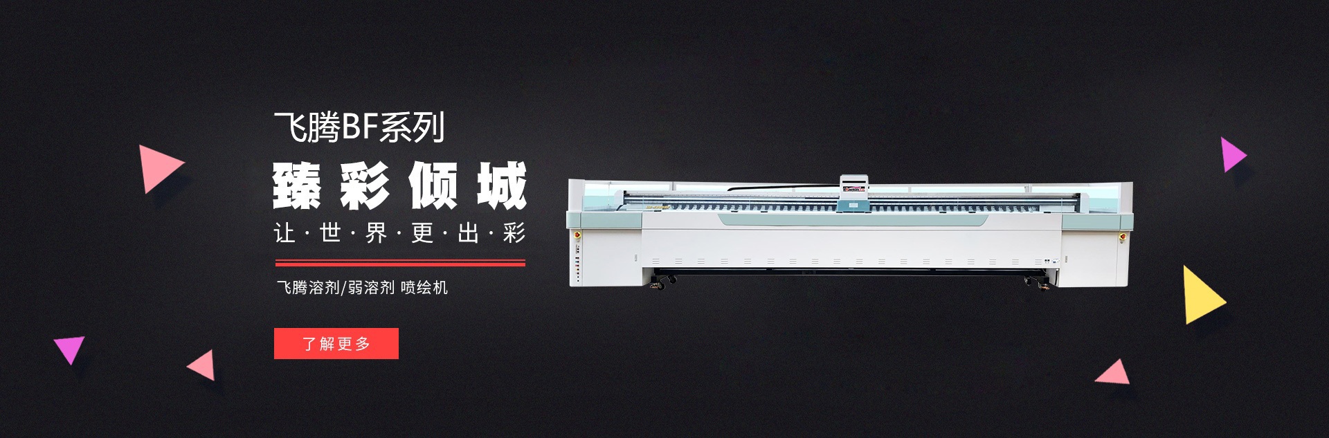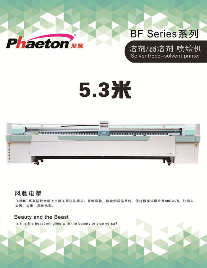 飛騰BF系列搭載全新上市精工阿爾法噴頭、直線導(dǎo)軌,穩(wěn)定的送布系統(tǒng),使打印模式提升至400㎡/h,讓噴車(chē)如風(fēng)、如電,風(fēng)馳電掣。