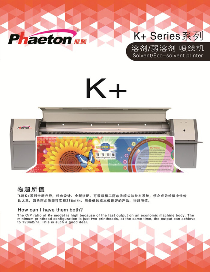 飛騰K+系列全新升級(jí),經(jīng)典設(shè)計(jì)、全新搭配,可裝載精工阿爾法噴頭與扯布系統(tǒng),使之成為繪機(jī)中性價(jià)比之王,四頭阿爾法即可實(shí)現(xiàn)256㎡/h,用最低的成本做最好的產(chǎn)品,物超所值。